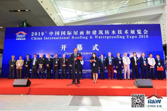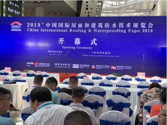 2019-5-28,2019中国国际屋面和建筑防水技术展览会在上海世博园展览舘举行。开幕式由中国建筑学会苗燕付会长主持,中国建筑防水协会朱冬青秘书长致开幕辞,来自世界各地的专家学者和参展人员近万人出席。