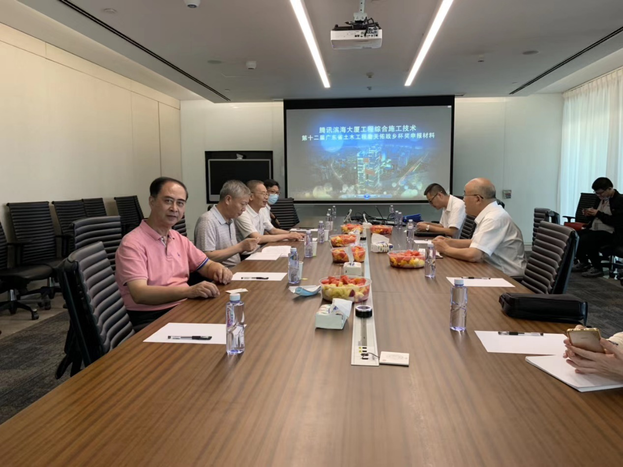 2020-6-20/21,广东省詹天佑故乡杯评选专家组—省学会梁伟䧺秘书长、深圳学会刘福义秘书长、华南理工大学蔡健教授、中建八局马德超总工一行来到深圳,对所申报的六个项目进行考察,六个项目分别是深业上城、清华大学创新基地、莲塘口岸、汉京金融中心、金茂大厦、腾讯大厦。进行了实地考察和听取了汇报。专家组一致认为深圳的六个项目无论在设计、施工、机电、工装、幕墙等方面都有不俗的表现,受到专家的一致好评。
