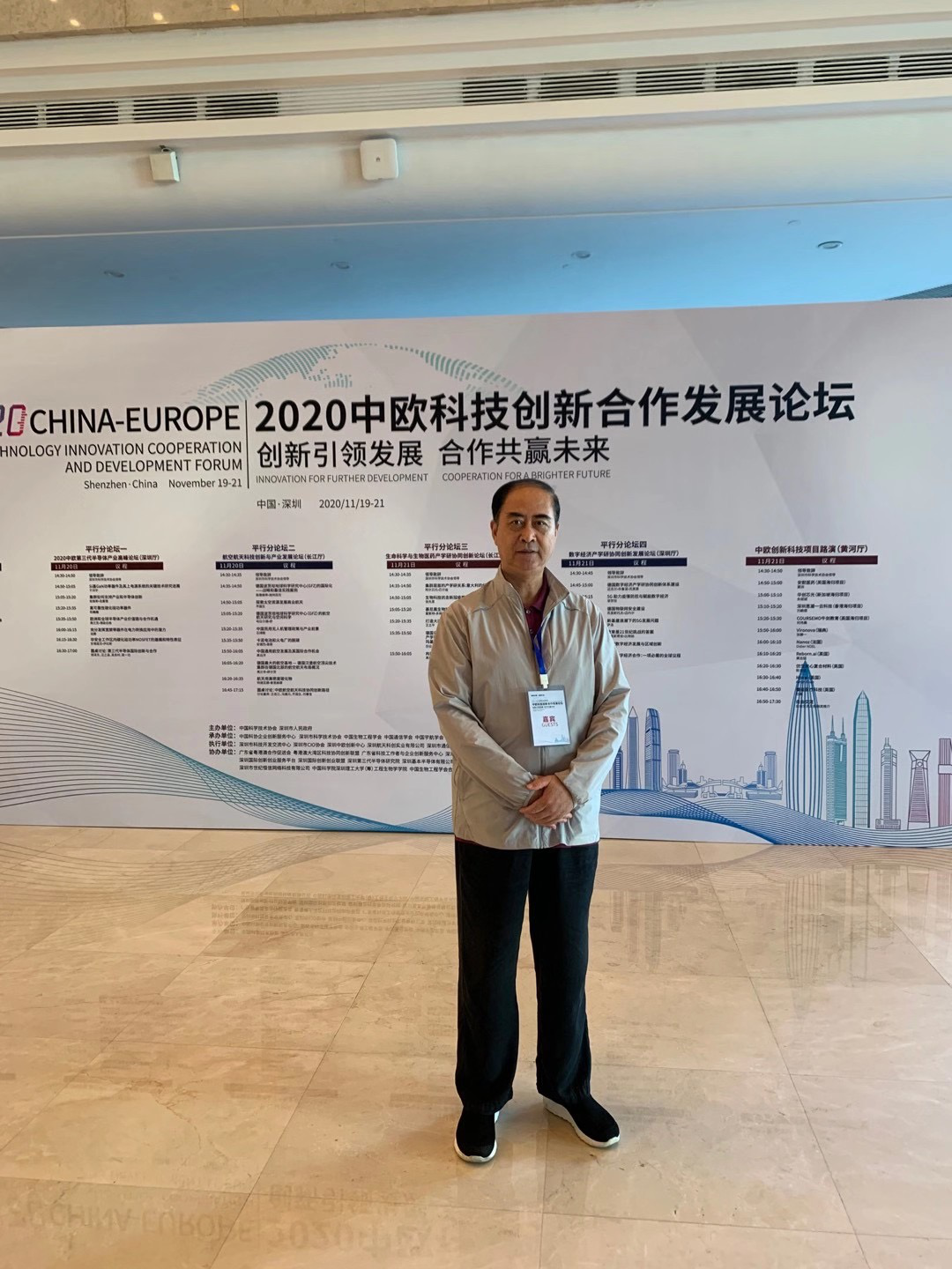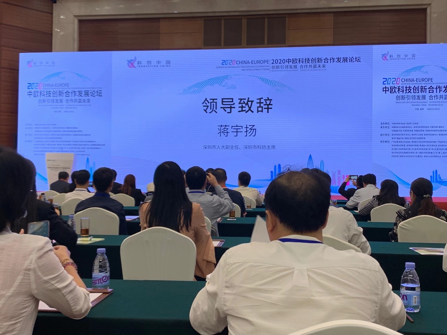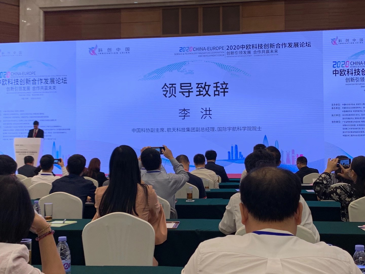 2020-11-19,中欧科技創新合发展论坛在深圳五洲宾馆举行。大会开幕式由市科协党组书记、付主席林祥主持。蒋宇扬、省科协付主席馮日光、中国科协付主席李洪分别致辞。科技部原付部长刘燕华做主旨报告。全市各届领导及科技工作者300多人出席。