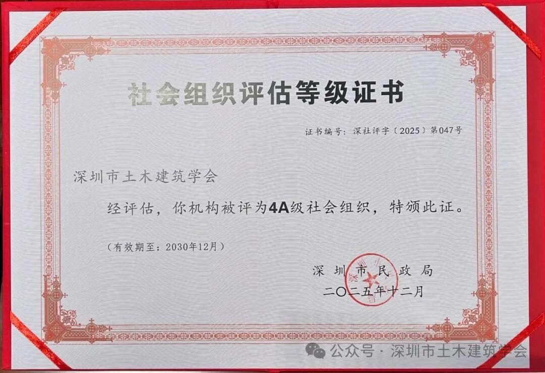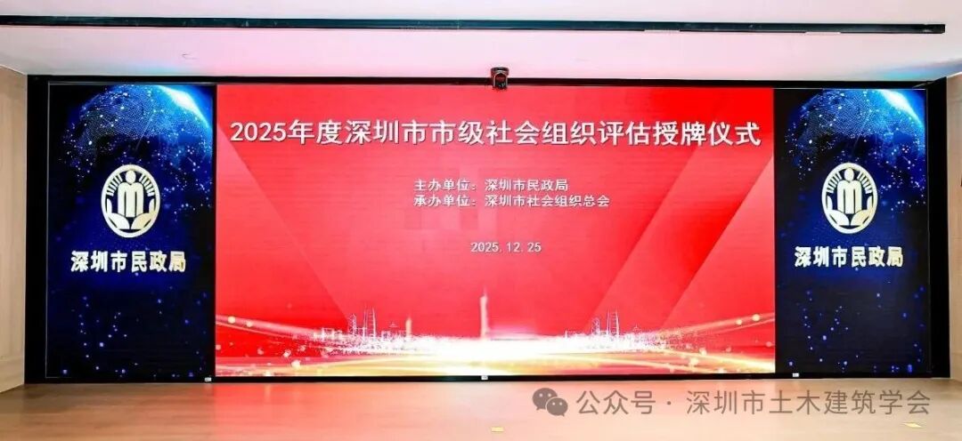2025年12月25日,深圳市民政局举办2025年度深圳市市级社会组织评估授牌仪式,市民政局有关负责人、获评3A级以上(含3A级)社会组织代表共百余人出席,我学会作为获4A评级的组织参加了此次授牌仪式。