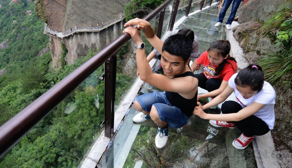 5月27日,国内首条音乐玻璃栈道在湖南平江石牛寨竣工迎客。游客们纷纷来到此地,用脚踩出各种自己喜爱的音符。据介绍,此条长180米的音乐玻璃栈道位于300米悬崖之上,采用特制的双层玻璃制成,玻璃中掺有感应电子元器件,能演奏出70个不同音符。