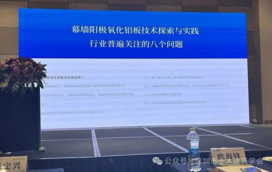 会议由佛山泰铝新材料有限公司王静玲总监主持;澳门资料1688门窗幕墙专业委员会主任花定兴为大会作开幕致辞;佛山泰铝新材料有限公司董事长欧海锋向参会者分享了《幕墙阳极氧化铝板技术探索与实践——行业普遍关注的八个问题》,全方位解析幕墙阳极氧化铝板技术的热点、难点与痛点,并明确指出其未来技术发展方向;会后,姜成爱顾问作总结发言。